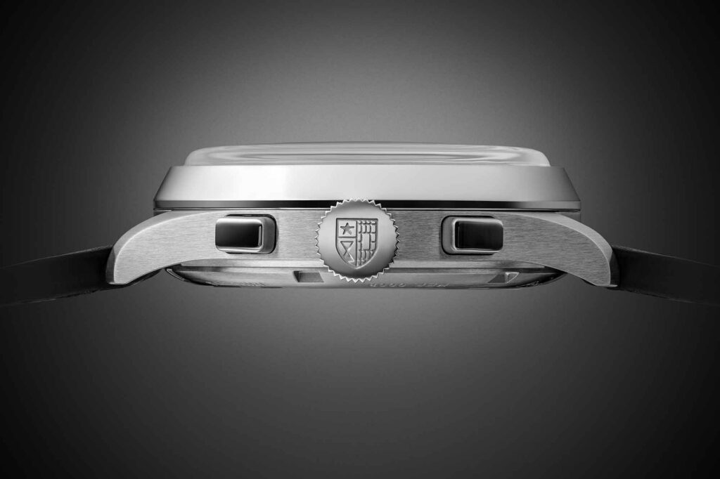 The new reissue model measures 36mm in diameter and 11.9mm thick, including a sapphire caseback, which keeps it in “vintage” territory. In a market where heritage chronographs routinely swell past 40mm, I appreciate the restraint. The 316L stainless steel case retains the steep bezel profile and strong vertical transitions of the original, while the double-domed sapphire crystal gives the dial plenty of visual presence without adding unnecessary bulk. With 100 meters of water resistance, it also feels more wearable day to day than many true vintage pieces.
