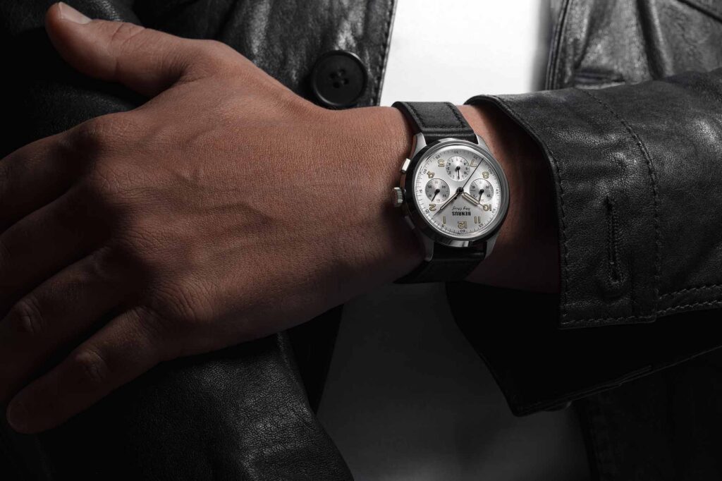 The watch ships on a grey leather strap with a polished pin buckle, with an additional black strap available, which feels appropriate for a mid-century aviation chronograph and leaves plenty of room for strap experimentation. Where things become complicated for me is the $3,950 price tag. That figure immediately forces comparisons. I can’t help but think about the Longines Avigation BigEye, which offers a similar vintage aviation character at a lower retail price and even more attractive numbers on the secondary market. I also think about other heritage-driven chronographs that land well under four thousand dollars.