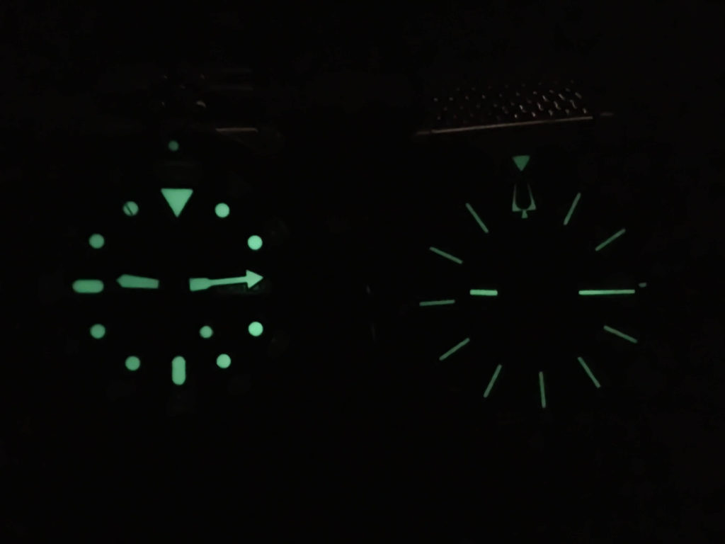 Bulova’s lume is functional, providing good enough visibility for quick checks in low light, but it is often short-lived compared to competitors. On the Accutron II Snorkel we tested, it barely charged from ambient light and lost brightness within minutes. Put it next to something like a Seiko SKX007 and the difference is noticeable; Seiko’s lume glows like a beacon, while Bulova’s feels more like a brief reminder it’s there. In fact, that’s exactly what we did in our testing photo below.