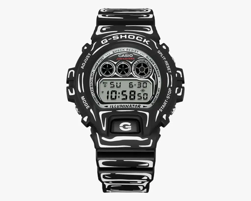 The black DW6900JV-1 is the one that’s got me more curious—if I’m being honest, the white line work against the matte black finish reads less like illustration and more like an urban camo pattern from certain angles. Whether that’s by design or just a happy accident, I’m not sure. Both models debut at a G-Shock x Joshua Vides pop-up event in Los Angeles on March 13 and 14, with wider availability through JoshuaVides.com, the G-Shock SoHo Store, and select retailers starting March 16.