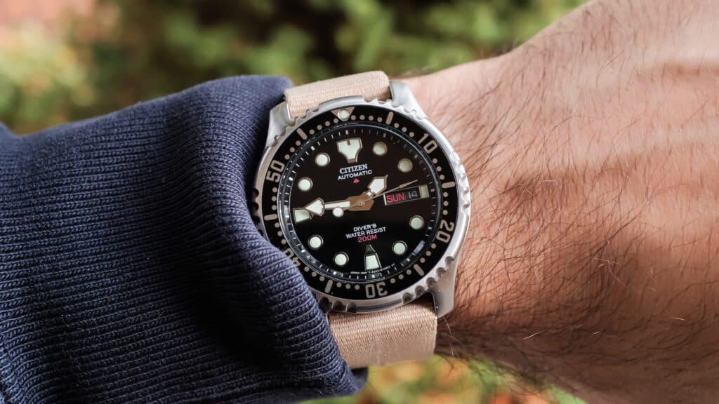 In day-to-day wear, the Citizen NY0040 has been surprisingly easy to live with. Over the short time I’ve had it, it’s felt more comfortable on the wrist than the SKX divers I’ve owned in the past. Visually, it presents itself as a smaller watch than the measurements suggest, and that impression holds up once it’s actually worn.