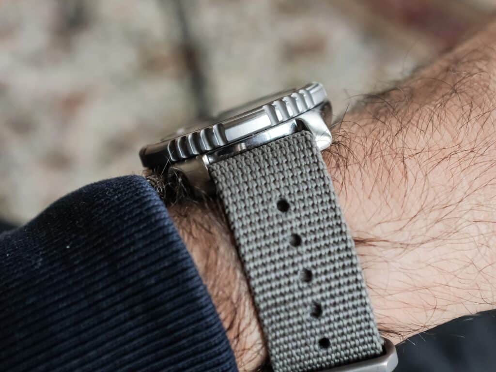 I didn’t waste much time before pulling it off and rotating through a few of my go-to NATO straps, which suit the watch surprisingly well. The case has enough presence to carry fabric without looking underdressed, and the overall tool-watch character actually feels more honest once it’s paired with something simple and utilitarian.