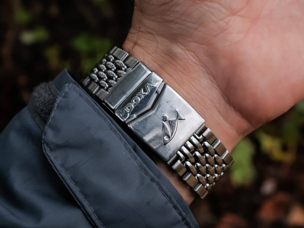 The bracelet was never flashy, but I don’t think that was never the point. You see a lot of cool Instagram shots around that show this watch on a variety of straps but I’ve always just kept it on the bracelet. That beads-of-rice style hugs the wrist in a way that feels more like fabric than steel. It flexes just enough, with a gentle taper that keeps the weight centered. When I first sized it, I remember being surprised at how balanced it felt. Most bracelets with this kind of visual character feel a bit costume-like. Only weird thing about it is that it doesn’t evenly taper down all the way to the clasp. I don’t know why Doxa did this but it often leaves me wondering if it would be fun to source a vintage Doxa beads of rice bracelet for an even more “accurate” fit. The clasp is simple and has always done its job without complaint. It has a dive extension and a small set of micro-adjust holes, nothing fancy, but exactly what you’d expect on a watch built around utility.