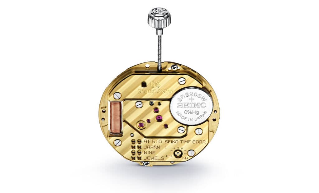 Inside both references is the new Caliber 9F51, a more compact evolution of the established 9F quartz architecture. Measuring 26.40 mm in diameter and just 2.20 mm thick, it allows the case to come in at 9.1 mm overall. Annual accuracy remains rated at ±10 seconds. The Twin Pulse Control Motor drives the large, multi-faceted hands, and the Backlash Auto-Adjust Mechanism keeps the seconds hand landing cleanly on each index. Each quartz crystal is individually selected and aged before assembly, and the movements are hand-assembled and regulated at the Shinshu Watch Studio.
