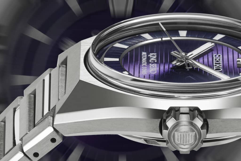 The dial gets a small tweak as well. The steel models used horizontal fluting, while the titanium version mixes horizontal and radial textures, which should give the surface a bit more depth. The color options are simpler this time around, grey, black, and a metallic purple that carries some of that original 1970s personality.