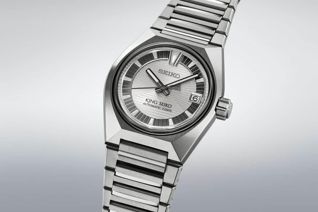 The new King Seiko Vanac keeps the same proportions, 41 mm across and 14.3 mm thick, along with the integrated bracelet and sapphire crystal, but the case and bracelet are now titanium. For a watch this size, that change alone probably makes a difference. Titanium tends to take the edge off larger cases, and the Vanac’s angular design looks like it would benefit from that lighter feel.
