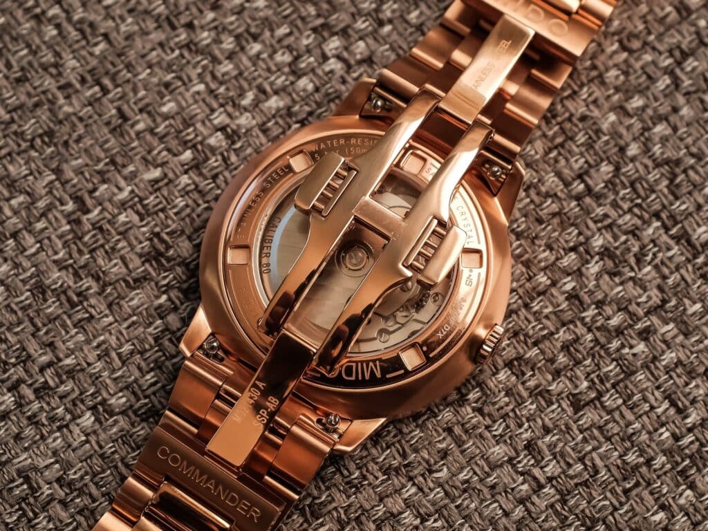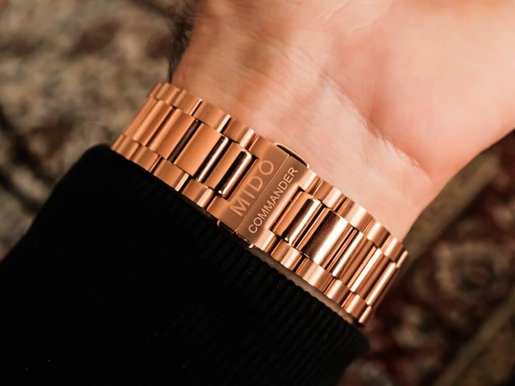 Then I opened the box and realized this wasn’t the steel version. It was the rose-gold-tone PVD-coated model, which immediately made things more interesting. I’ve never really been a gold watch guy. Steel has always felt like home base for me, and that’s mostly where my taste has lived. Lately, though, I’ve started getting a little more curious about gold-toned watches. I’m still not fully there, but I’m at least open to the idea in a way I wasn’t before. So the first thought I had pulling this Mido Commander Datoday out of the box was pretty simple: is this the watch that changes my mind?
