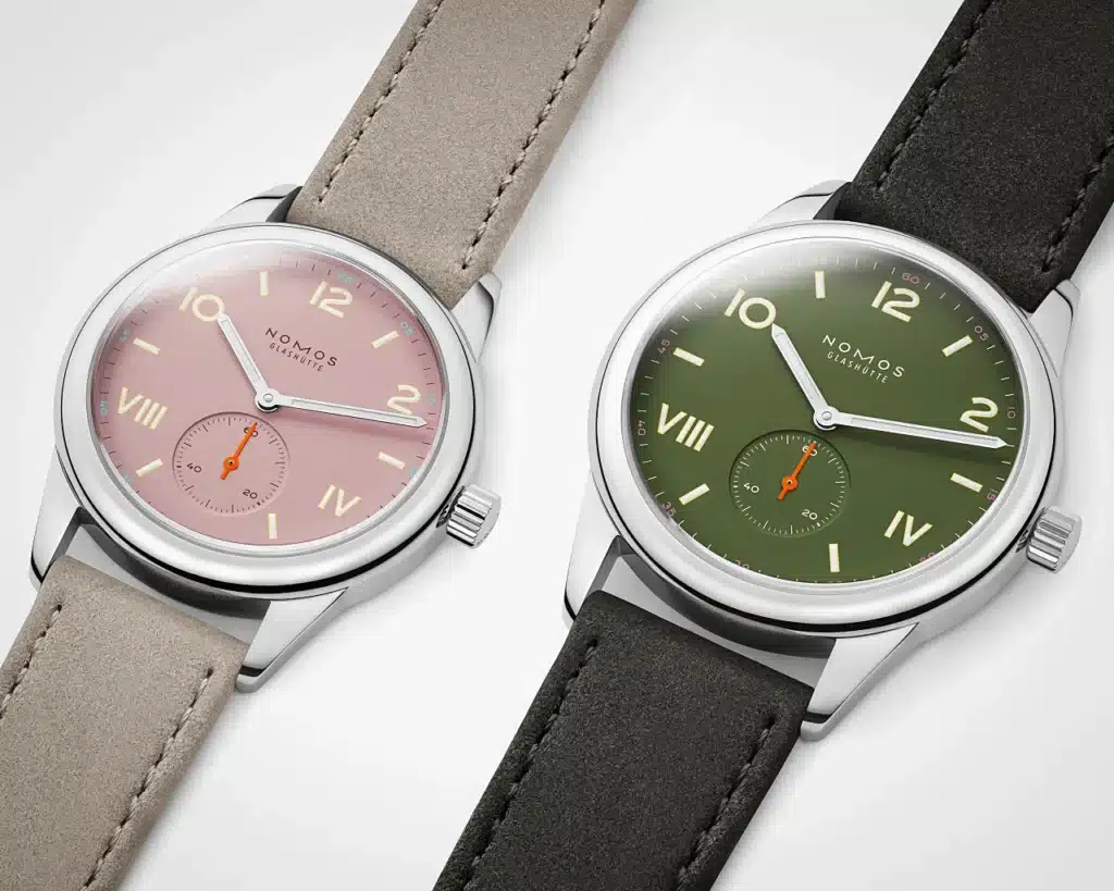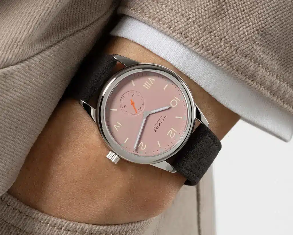 Pricing for the 36mm starts at $1,890 with additional options for a display back. Pricing for the 38mm starts at $2,070. Both come on vegan velour straps matched to their dial tones. Whether these colorways appeal to you is entirely subjective, but the underlying watch is a stronger proposition than it was before. That lug-to-lug change alone might be the most important thing Nomos did here, even if they didn’t lead with it.