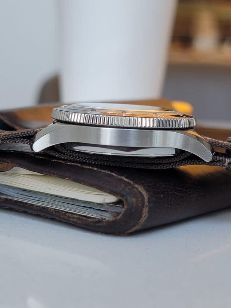 The watch’s dimensions are definitely within the “goldilocks zone” of wearability, with a diameter of 39mm, a lug-to-lug of 46mm, and a height of 12.2mm. That height is further masked by the proportional bezel, mid-case and caseback, making for a slimmer overall profile. While it doesn’t exactly disappear on the wrist, it does make for a nice wearing experience that doesn’t make you constantly aware of the object attached to your arm.
