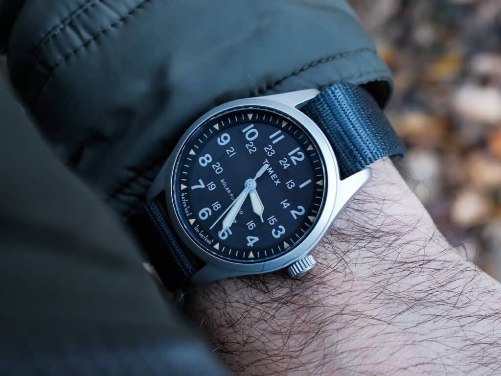 I’ve spent more time than I care to admit hunting for a classically sized field watch that actually holds up in real-world use. Not “field-inspired.” Not “modern reinterpretation.” Just a simple, compact watch that checks the three basic boxes: military styling, solid water resistance, and a screw-down crown. You’d think that would be easy to find. It’s not. Until I found the Timex Expedition Field Post Solar 36mm during a recent recording of the Two Broke Watch Snobs podcast.