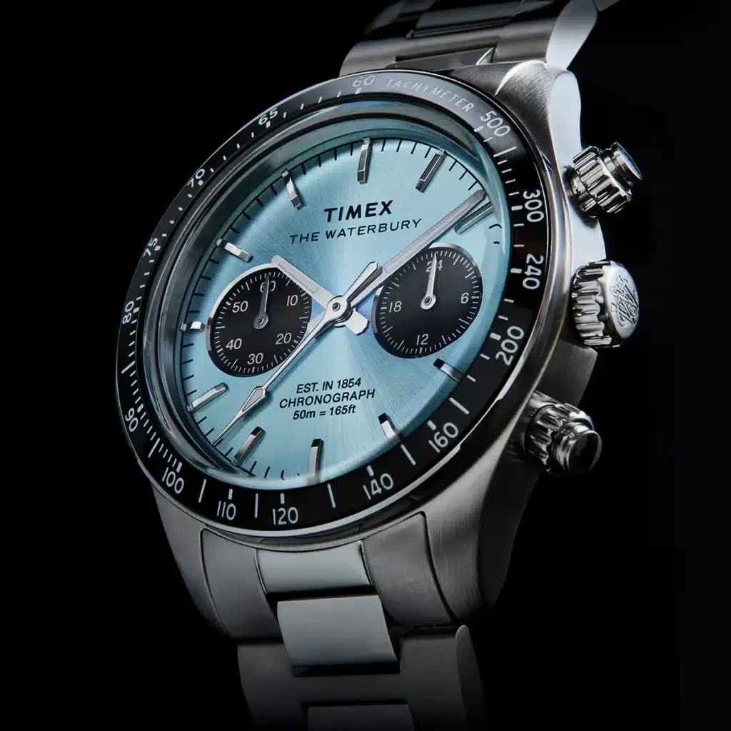 I’ve been circling the idea of adding a Timex chronograph back into my rotation for a while now. There is something nostalgic about the brand revisiting these heritage-inspired designs while keeping them attainable. This ice blue variant feels like the most compelling execution yet in the current Waterbury chronograph lineup. It is familiar, but the dial gives it just enough personality to stand out.